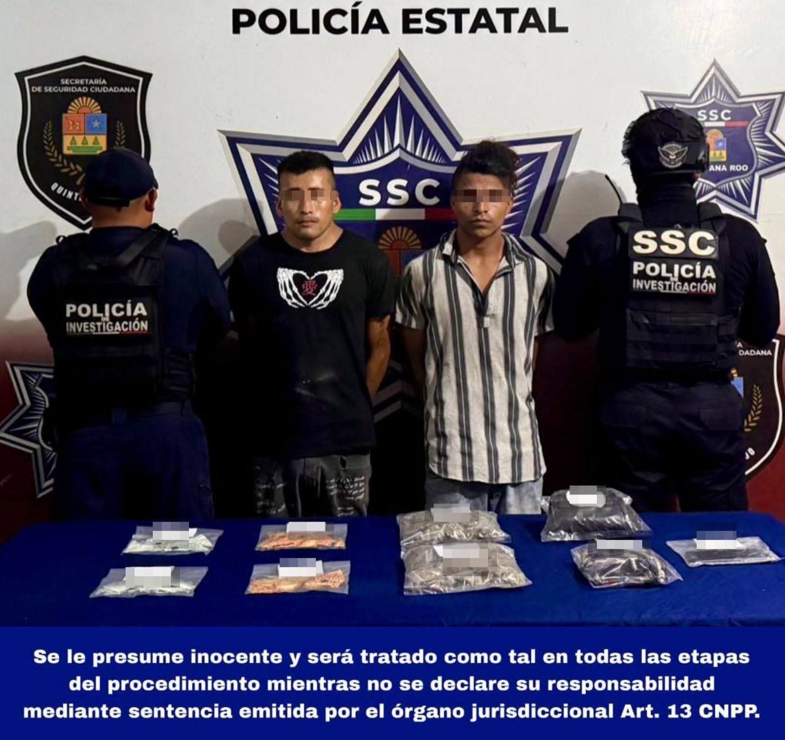 La policía de Cancún los detuvo en flagrancia cuando comercializaban los narcóticos en plena vía pública.