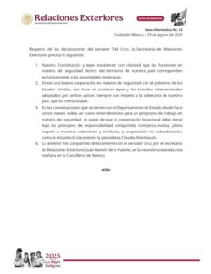 Nota informativa respecto de las declaraciones del senador Ted Cruz.https://t.co/drgHkcPsZP pic.twitter.com/qUZr1l8Dl1