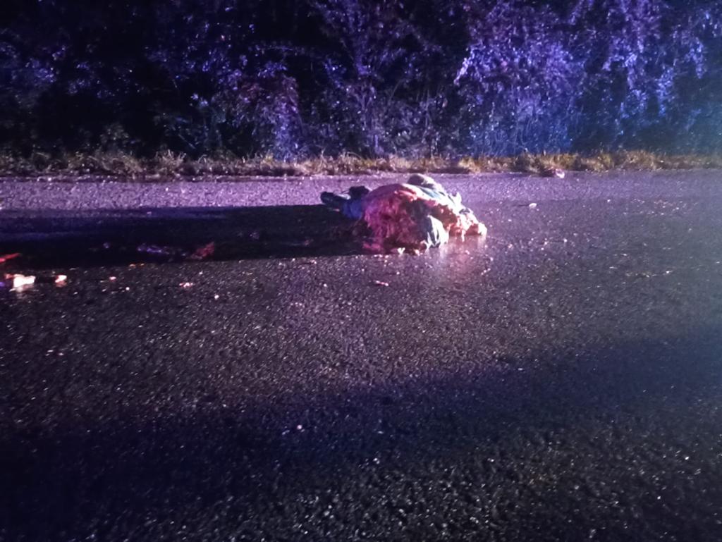 El cuerpo del hombre que se encuentra en calidad de desconocido, quedó prácticamente molido a mitad de la carretera, fue atropellado cuando trataba de cruzar la vía.