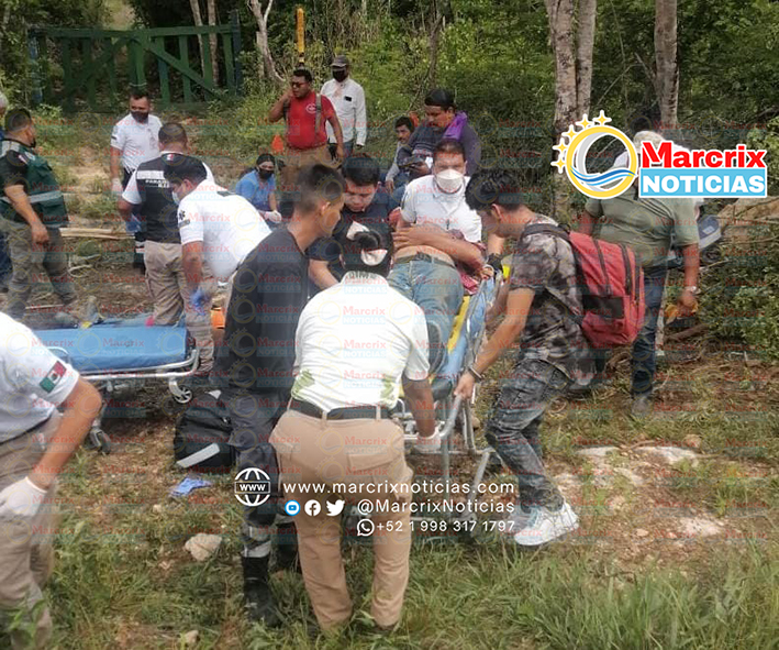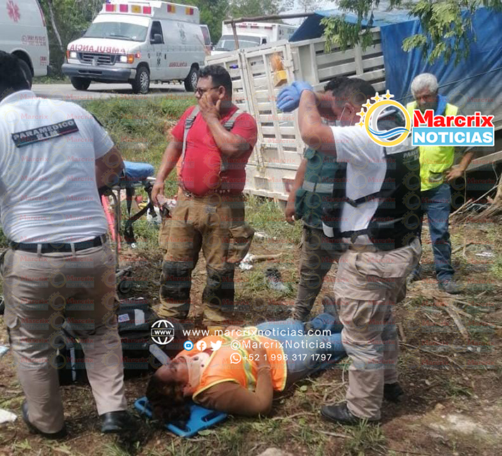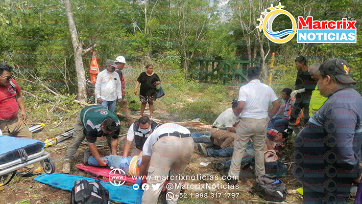 Paramédicos de la Cruz Roja Mexicana y de la empresa Rim auxiliaron a los lesionados, cuatro de ellos ingresaron al IMSS de la Región 509 de Cancún y tres al Hospital Americano.