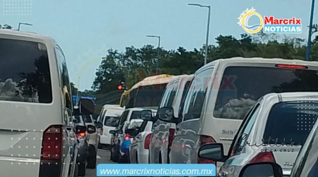 Cientos de turistas se han encontrado con un tráfico intenso al salir del Aeropuerto de Cancún.