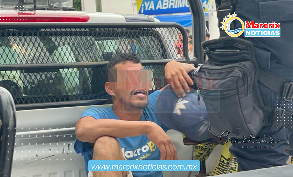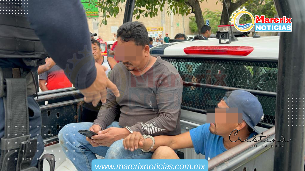 Los sujetos que provocaron el accidente fueron detenidos y subidos a una patrulla de la policía municipal.
