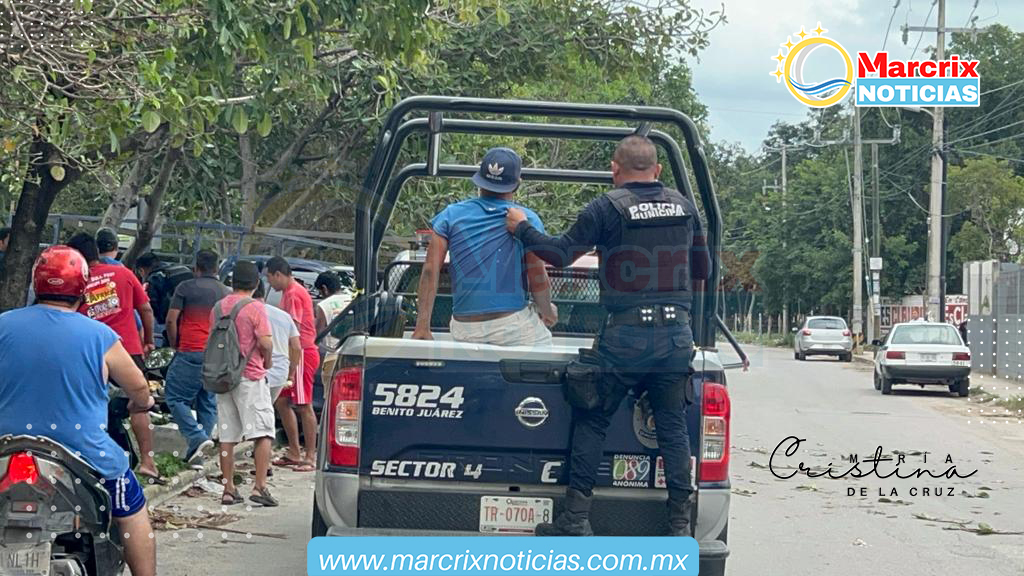 Cancún (Marcrix Noticias).- Dos hombres en estado de ebriedad que viajaban a bordo de una camioneta azul, provocaron un fuerte accidente sobre la avenida Los Tules, en el fraccionamiento Villas Otoch de Cancún.