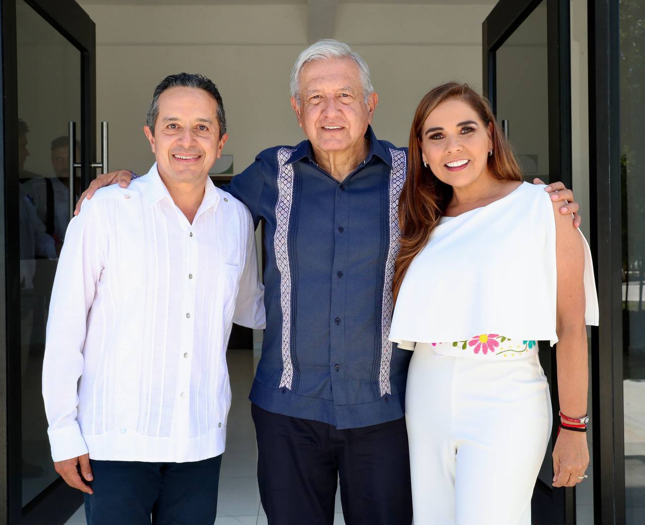 “Siempre un gusto recibirlo en casa Presidente, Andrés Manuel López Obrador. La transformación avanza fuertemente en el sureste con las obras del Tren Maya, aeropuertos de Tulum y Chetumal, Parque del Jaguar en Tulum, Puente Nichupté, nuevo bulevar Colosio, Distribuidor vial aeropuerto y avenida Chac Mool en Cancun. ¡Gracias por todo su cariño a QuintanaRoo! QueSigaLa4T”, escribió Mara Lezama en sus redes sociales.