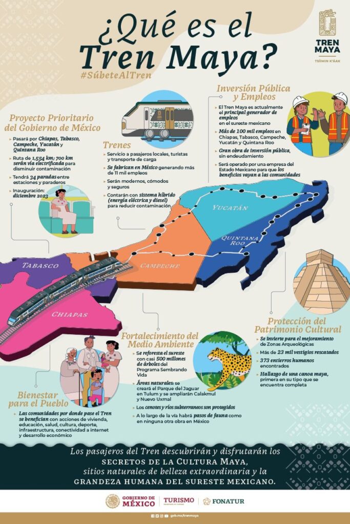 E mandatario federal supervisó la construcción de los tramos 5, 6 y 7 del Tren Maya, así como los aeropuertos de Tulum y Chetumal; también el Parque del Jaguar en Tulum, Puente Nichupté, bulevar Luis Donaldo Colosio, Distribuidor Vial Aeropuerto y Avenida ChaacMol en Cancún.