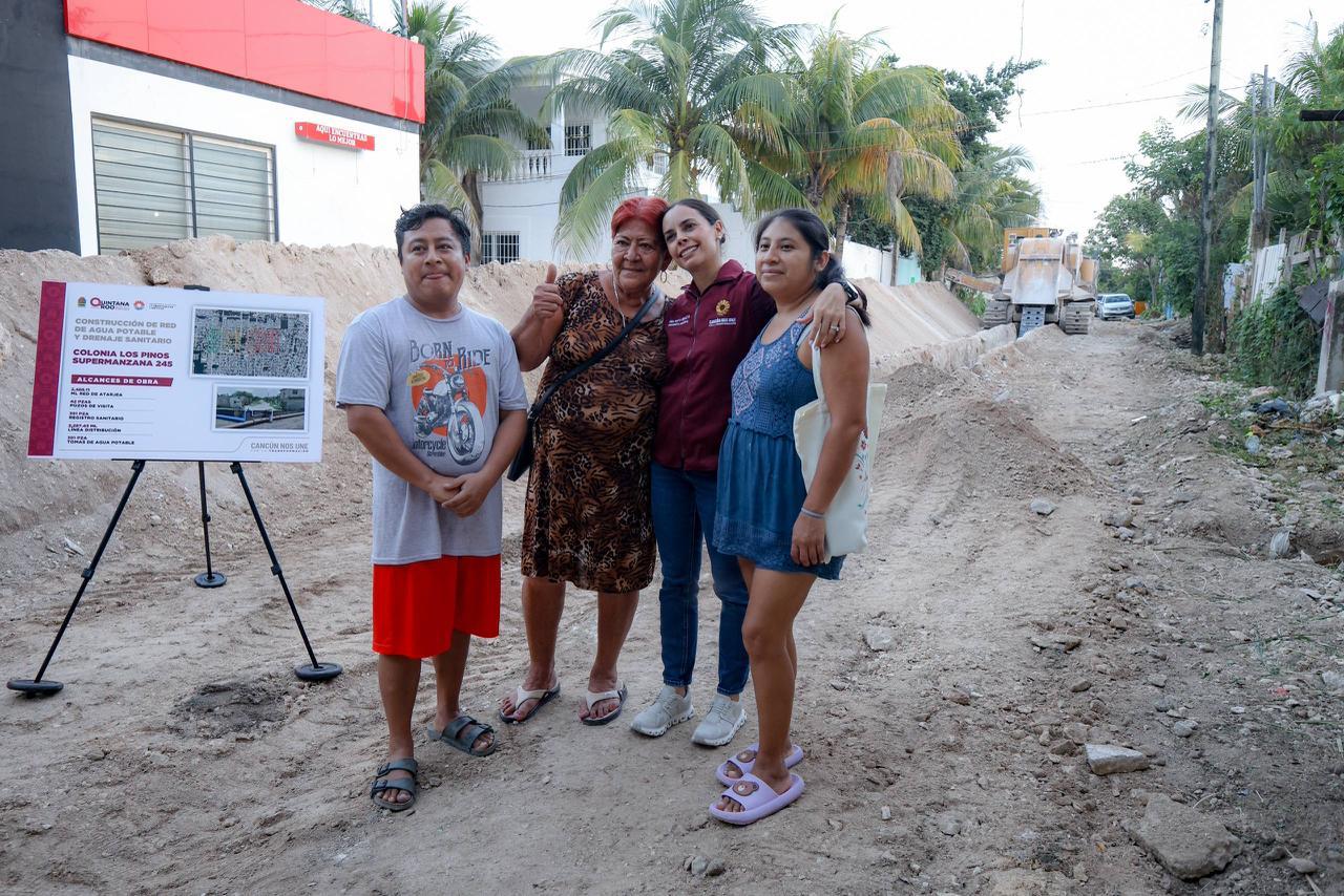 Cancún, Q. R., a 03 de diciembre de 2025.- “Esta es la verdadera transformación, llevando justicia social a familias que por décadas estuvieron olvidades. Seguimos regularizando y urbanizando colonias para llevar servicios básicos a todos los rincones de nuestra ciudad”, afirmó la Presidenta Municipal, Ana Paty Peralta, al realizar un recorrido de supervisión en la obra de introducción de la red de agua potable y drenaje sanitario en la colonia Los Pinos, en la Supermanzana 245.