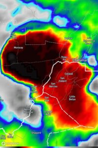 Chetumal. (Marcrix Noticias).- Una celda de tormenta se formó durante la tarde de este martes al occidente de Chetumal y Bacalar, lo que ha generado alertas preventivas en la zona sur de Quintana Roo por la posible presencia de lluvias intensas acompañadas de actividad eléctrica y rachas de viento.