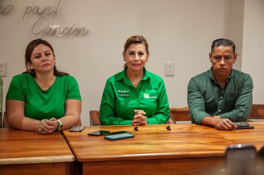 Cancún.- En conferencia de prensa, Susy Hurtado, candidata a diputada local por el Partido Verde Ecologista de México (PVEM) en el distrito II, fue reconocida y respaldada por la dirigencia del partido a nivel federal y local, en donde reconocieron el trabajo en campaña y la aceptación de la ciudadanía en cada recorrido.