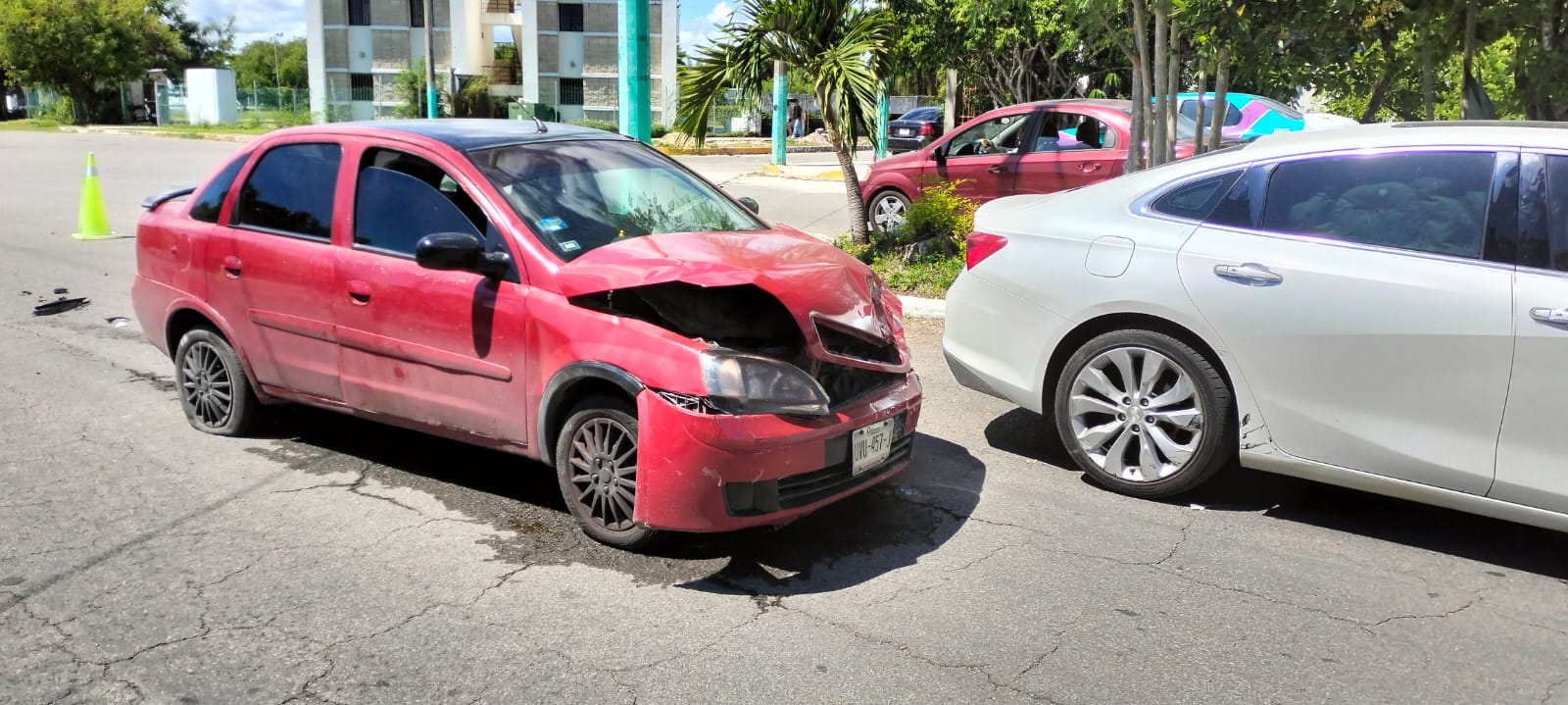 Chocan dos automóviles en Av. Universidad en Chetumal.