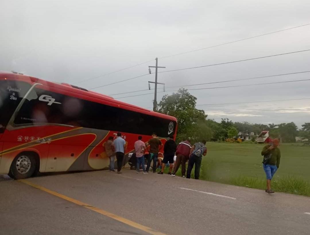 El conductor del autobús perdió el control de la unidad debido a la gravilla suelta y a lo mojado que se encuentra el pavimento.