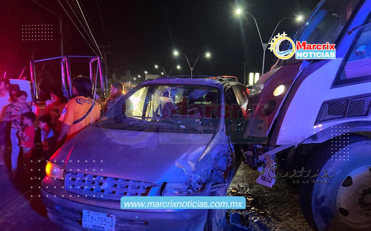El Tsuru en el que viajaba la mujer y sus 2 niños fue chocado por una camioneta en la avenida 115 de Playa del Carmen.