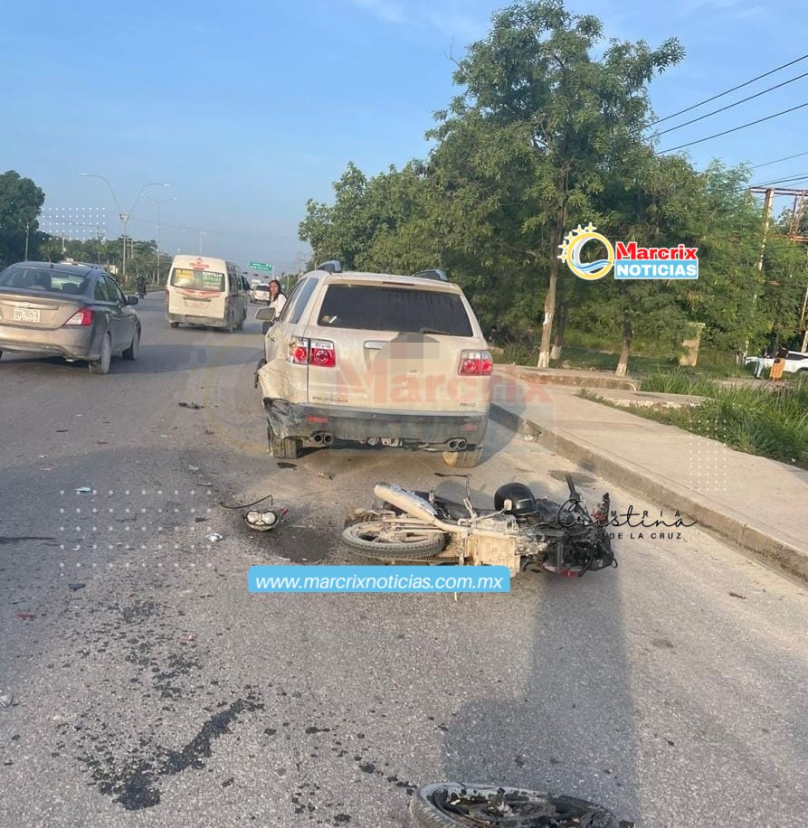 Paramédicos trasladan al lesionado al Hospital General Cancún (Marcrix Noticias).— Una camioneta de lujo arrolló a un motociclista en la SM 107 de Cancún y lo dejó con fractura en…