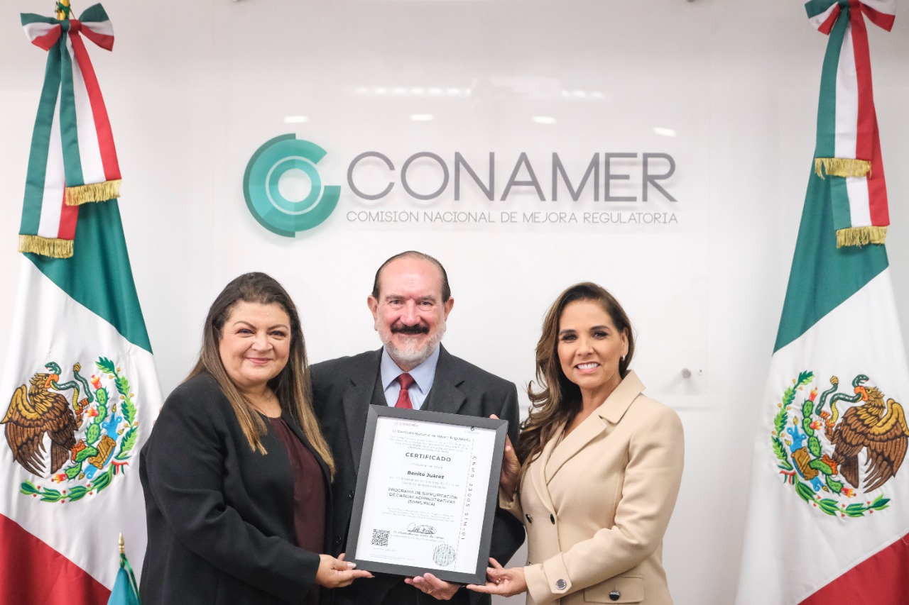El Ayuntamiento de Benito Juárez recibió la certificación nacional del Programa de Simplificación de Cargas Administrativas (SIMPLIFICA), por parte de la Comisión Nacional de Mejora Regulatoria (CONAMER), con lo cual…
