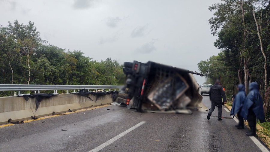 Tráiler volcó sobre su costado derecho Cancún (Marcrix Noticias).— La volcadura de un tráiler en la autopista Kantunil-Pto. Juárez provocó el cierre de la circulación en su dirección a Cancún…