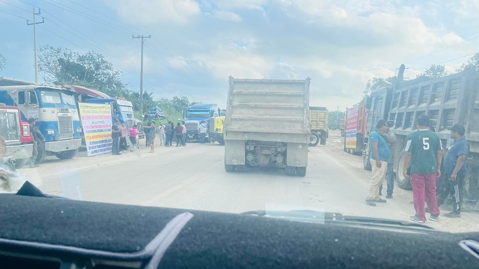 Volqueteros terminan bloqueo de la carretera Chetumal-Escárcega, les pagarán 30 millones