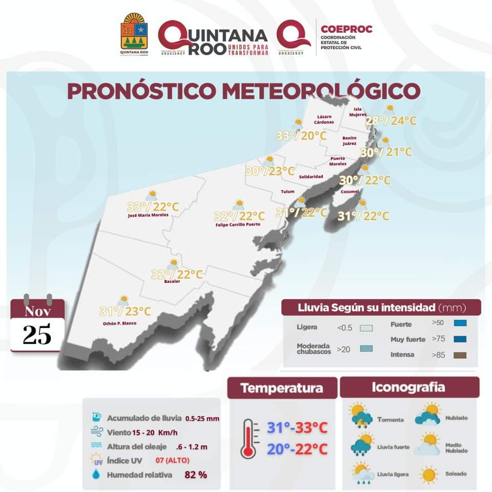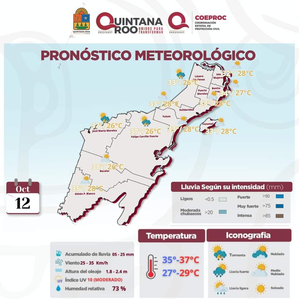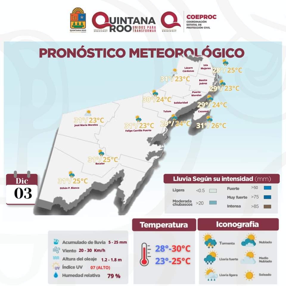 Protección Civil tiene previsto que durante el día haya un cielo medio nublado en la mayor parte de Quintana Roo.