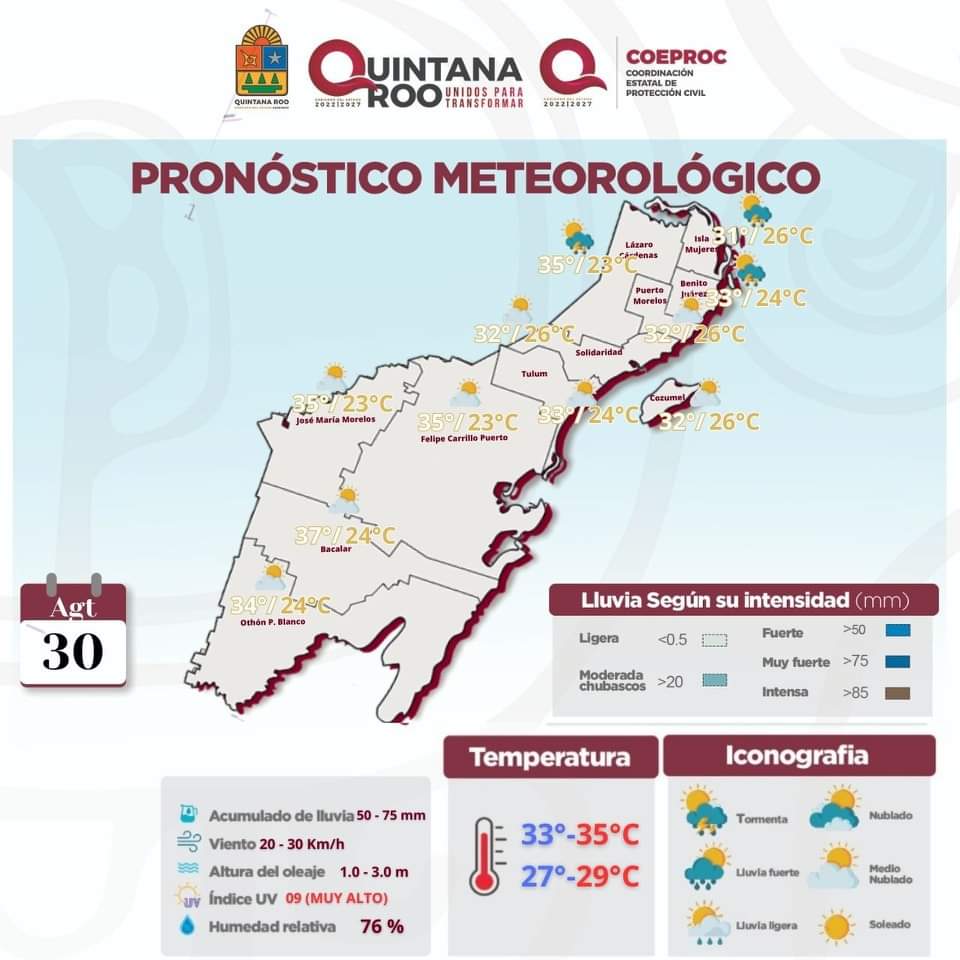 Protección Civil espera que haya un ambiente de caluroso a bochornoso durante el transcurso del sábado en Quintana Roo.