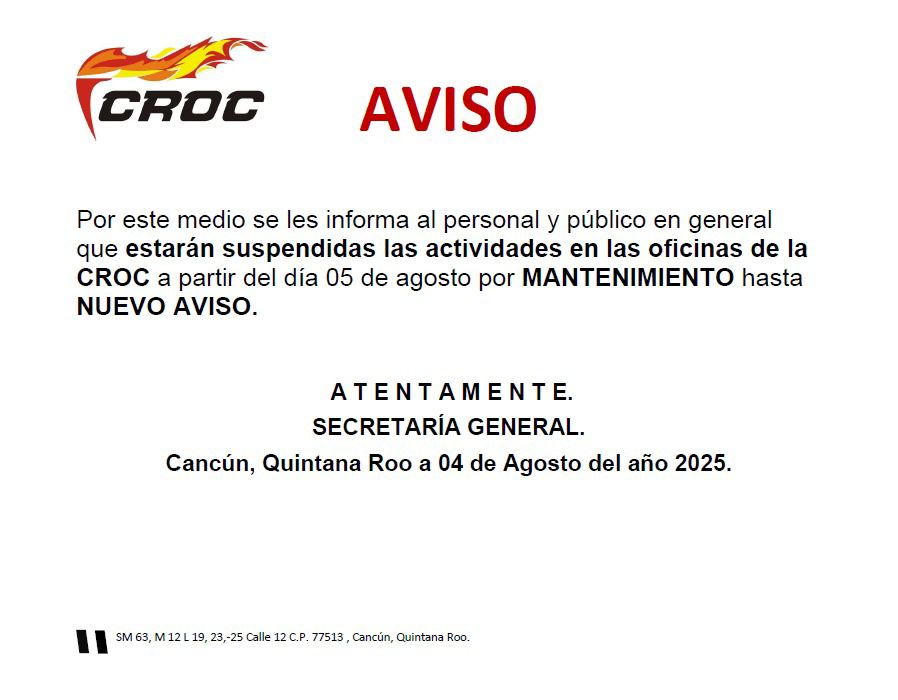 Oficinas cerrarán a partir del 5 de agosto; sindicato lamenta el crimen de su líder en Cancún Cancún, Quintana Roo. (Marcrix Noticias).- La Confederación Revolucionaria de Obreros y Campesinos (CROC)…