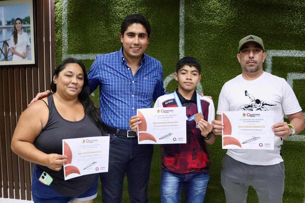 Al recibir y dar la bienvenida al medallista panamericano de luchas asociadas Isaías de Jesús Leciano Mut, el presidente de la Comisión del Deporte de Quintana Roo (CODEQ), Jacobo Arzate…