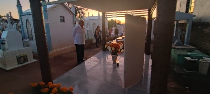 En la víspera del Día de Muertos, el mandatario visitó la tumba de sus padres Andrés López y Manuelita Obrador, así como la tumba de Rocío Beltrán Medina.