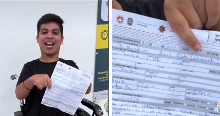 Infraccionado en Cancún por estacionarse en lugar de discapacitados, pero usa rilla de ruedas