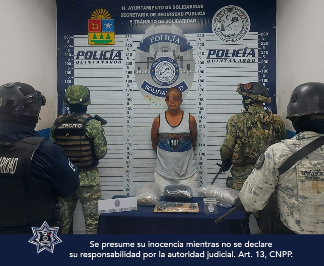Detiene en colonia “Bellavista” de Playa del Carmen a sujeto cargado de droga y con arma