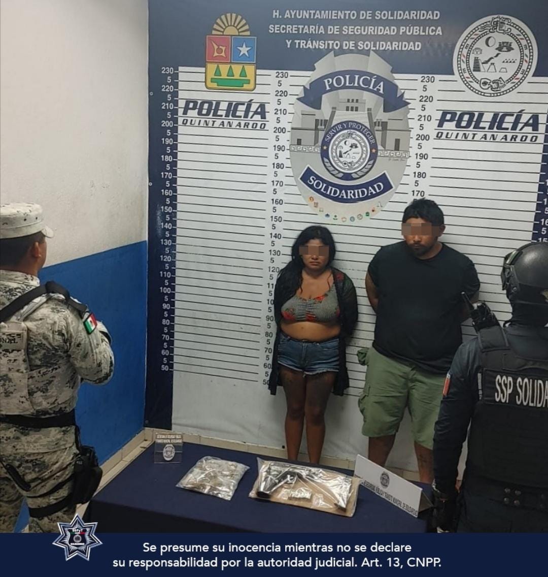En diferentes hechos delictivos, polcías de Cancún y Playa del Carmen lograron detener a 5 personas, entre estas 2 mujeres, con armas de grueso calibre y droga.