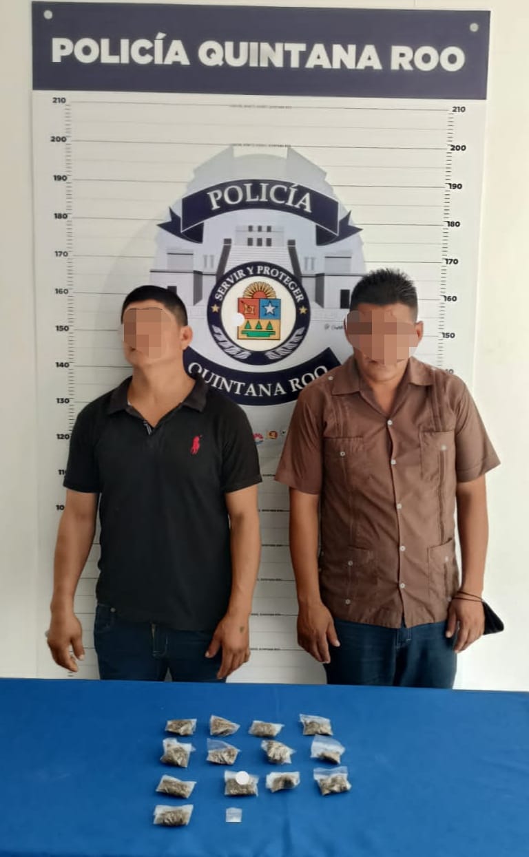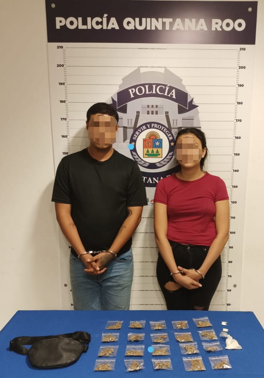 Oficiales de la Policía Quintana Roo detuvieron a una fémina y un masculino en la supermanzana 201, por delitos contra la salud.