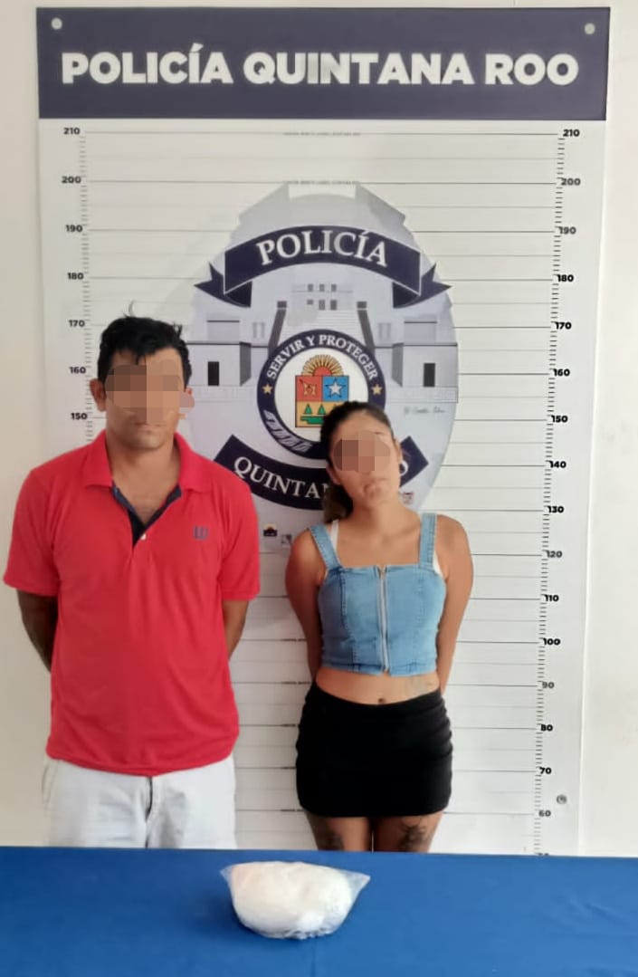 Una pareja de Cancún fue detenida por elementos de la Policía de Quintana Roo, por tener una bolsa con la droga llamada Cristal.