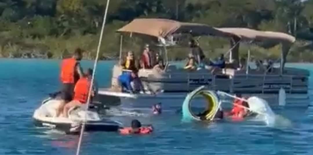 Un grupo de turistas se llevó el susto de su vida, cuando la embarcación en la que viajaban se hundió en la Laguna de Bacalar.