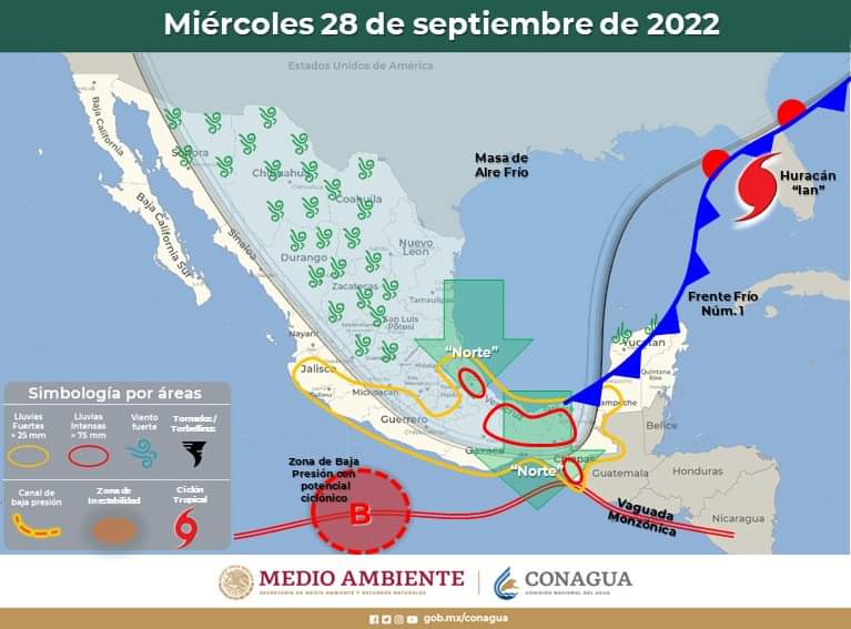 Las lluvias serán provocadas por un sistema de alta presión localizado sobre el noreste del Golfo de México.