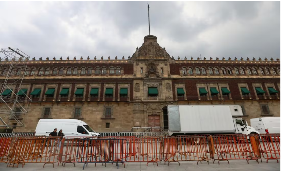 Colocan vallas metálicas en Palacio Nacional para el último informe de AMLO