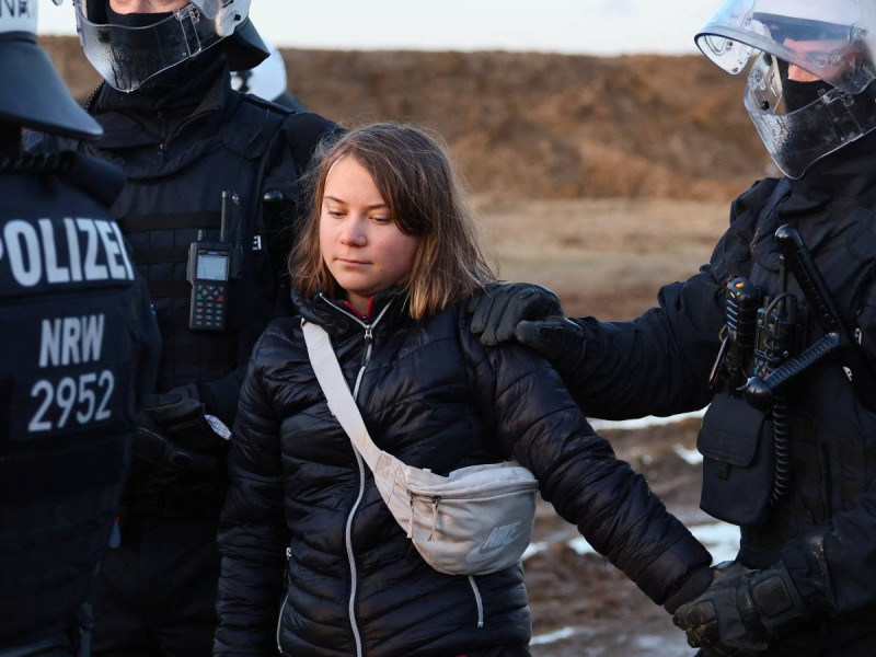 La activista climática Greta Thunberg se encontraba entre los activistas climáticos detenidos durante las protestas contra la demolición de la aldea carbonífera de Luetzerath el martes, según la policía.