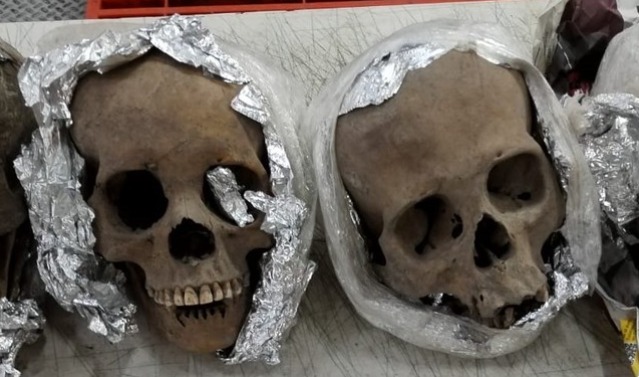 Los cráneos fueron encontrados en una empresa de mensajería y paquetería.