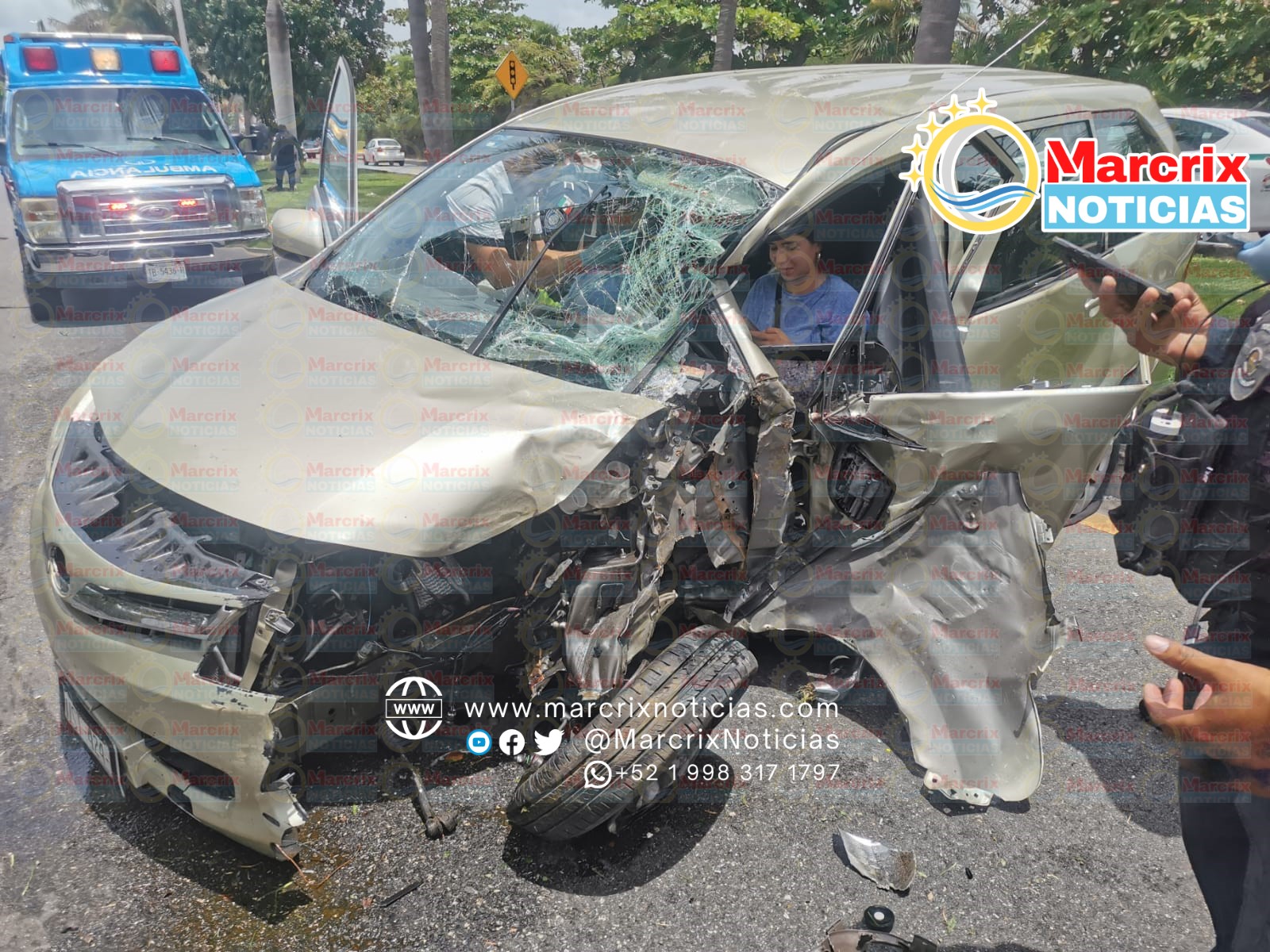 Al menos 2 personas quedaron prensadas en fuerte accidente en el kilómetro 7 de la zona hotelera de Cancún.