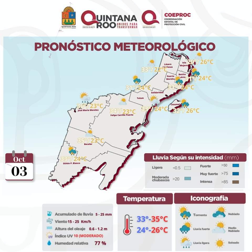 La mayor parte de Quintana Roo se verá afectada por las lluvias, según el pronóstico de Protección Civil Estatal.