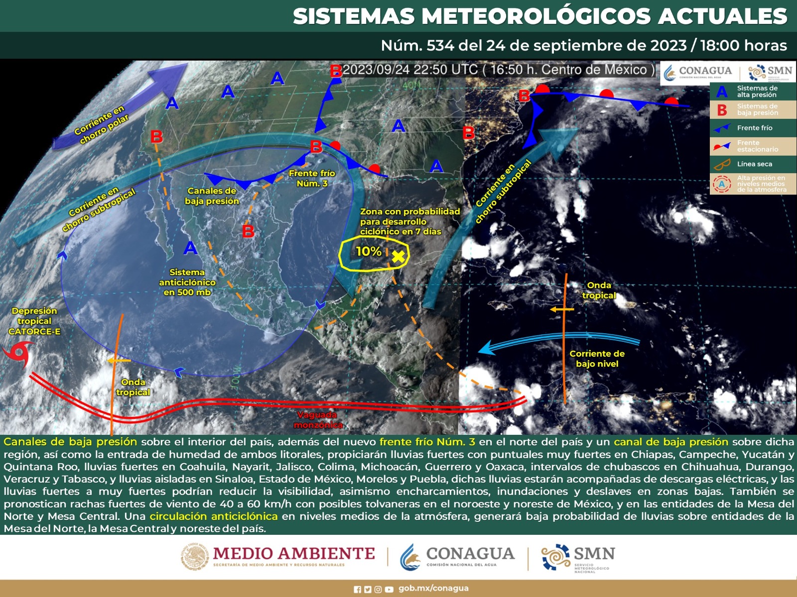 Además de Quintana Roo, se esperan fuertes lluvias en Yucatán, Chiapas y Campeche, debido a un Canal de Baja Presión.