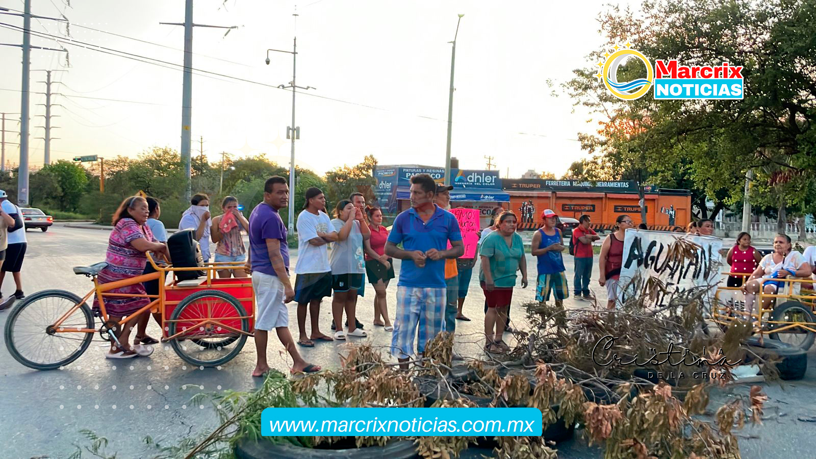 Vecinos del Fraccionamiento Kusamil bloquean la avenida López Portillo, en ambos sentidos, ante la falta de luz y de agua.