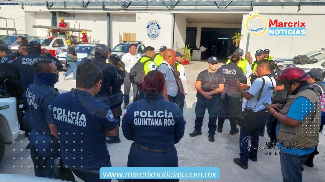 Los policías realizan una manifestación en las instalaciones de Seguridad Pública de Puerto Morelos para exigir el aumento salarial.