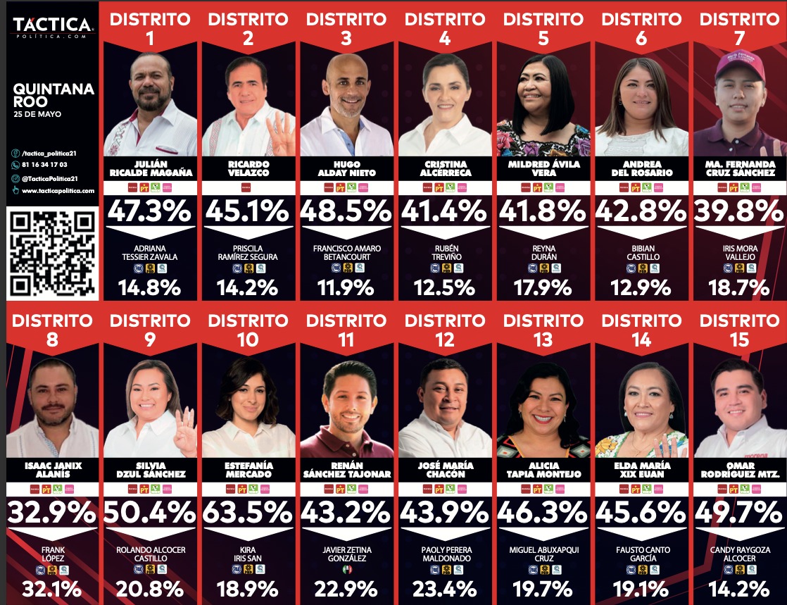La Coalición encabezada por Morena, tiene las preferencias en los 15 distritos electorales.