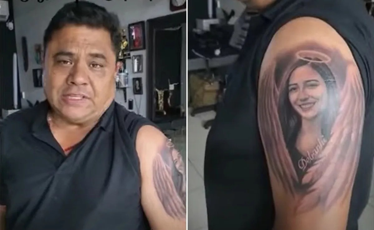 El rostro de Debanhi Escobar fue tatuado sobre el brazo de su padre.