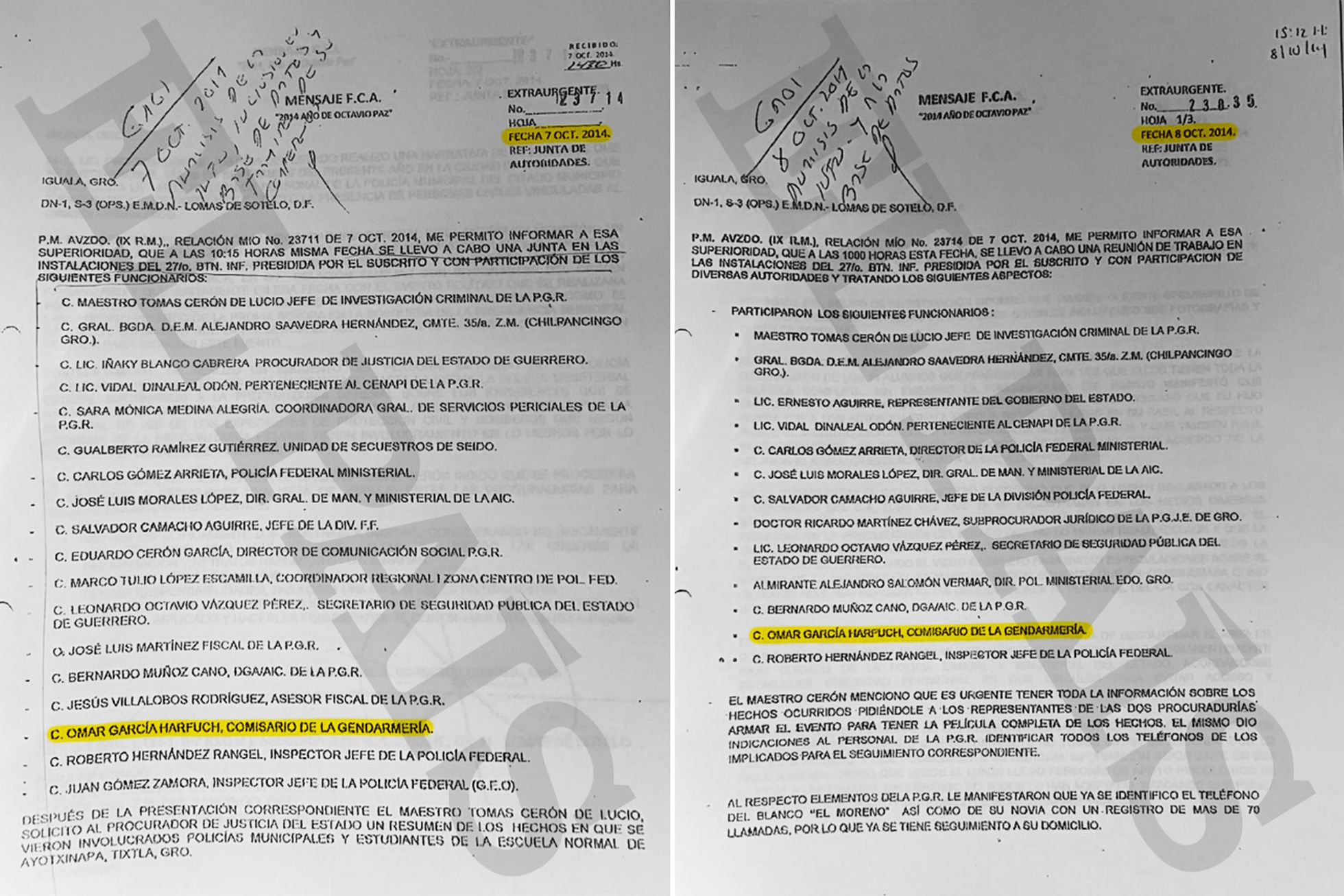 Documentos de la Secretaría de la Defensa sitúan a Omar García Harfuch en Iguala (Guerrero) el 7 y 8 de octubre de 2014, en las primeras reuniones conocidas entre autoridades…