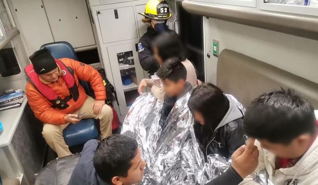 Casi a orilla del río, del lado norteamericano, la familia solicitó ayuda y a través de un aerobote los rescataron.