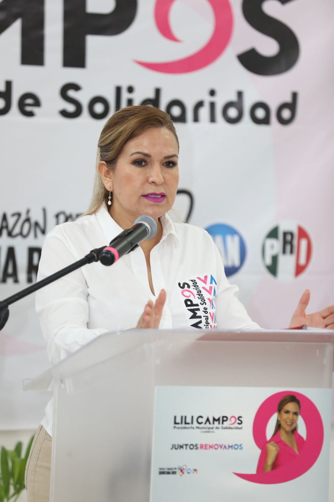 candidata a la presidencia municipal, por la alianza "Fuerza y Corazón por Quintana Roo", ante ciudadanos de Solidaridad.