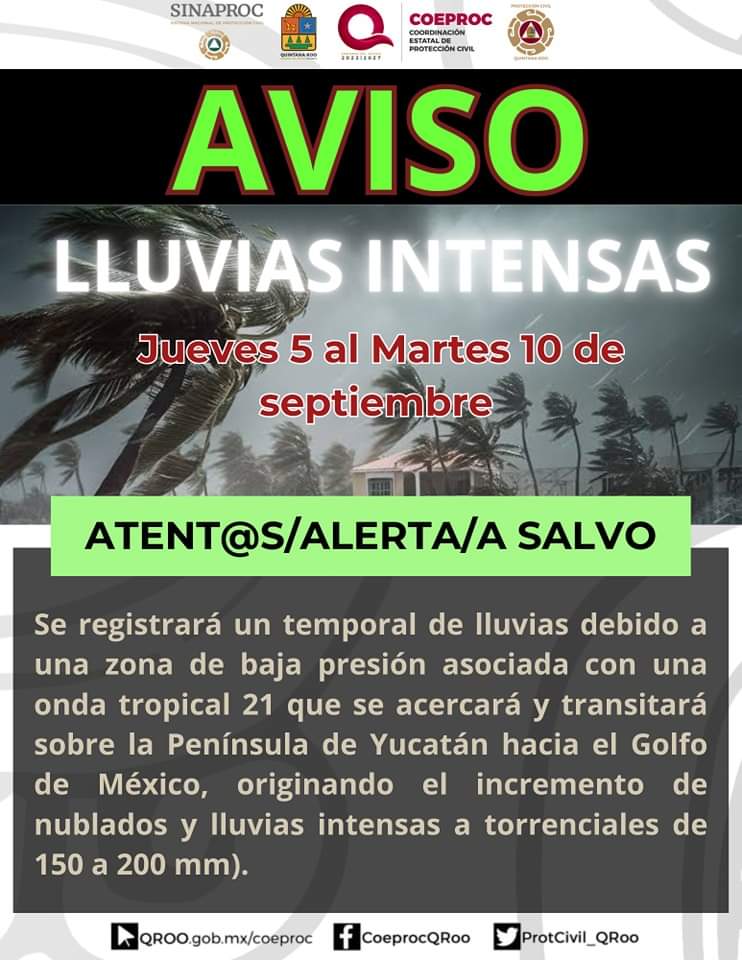 Protección Civil da recomendaciones por la temporada de lluvias en Quintana Roo