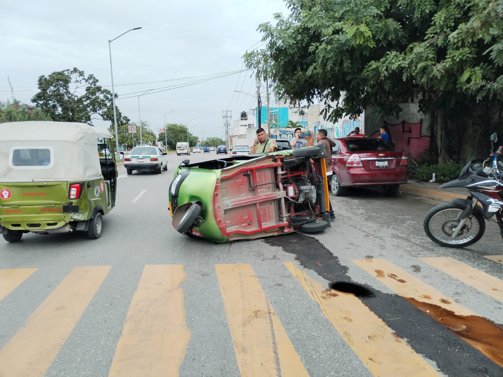 Esta mañana un automóvil particular chocó al mototaxi cuando circulaba con preferencia sobre la avenida Chac Mool.