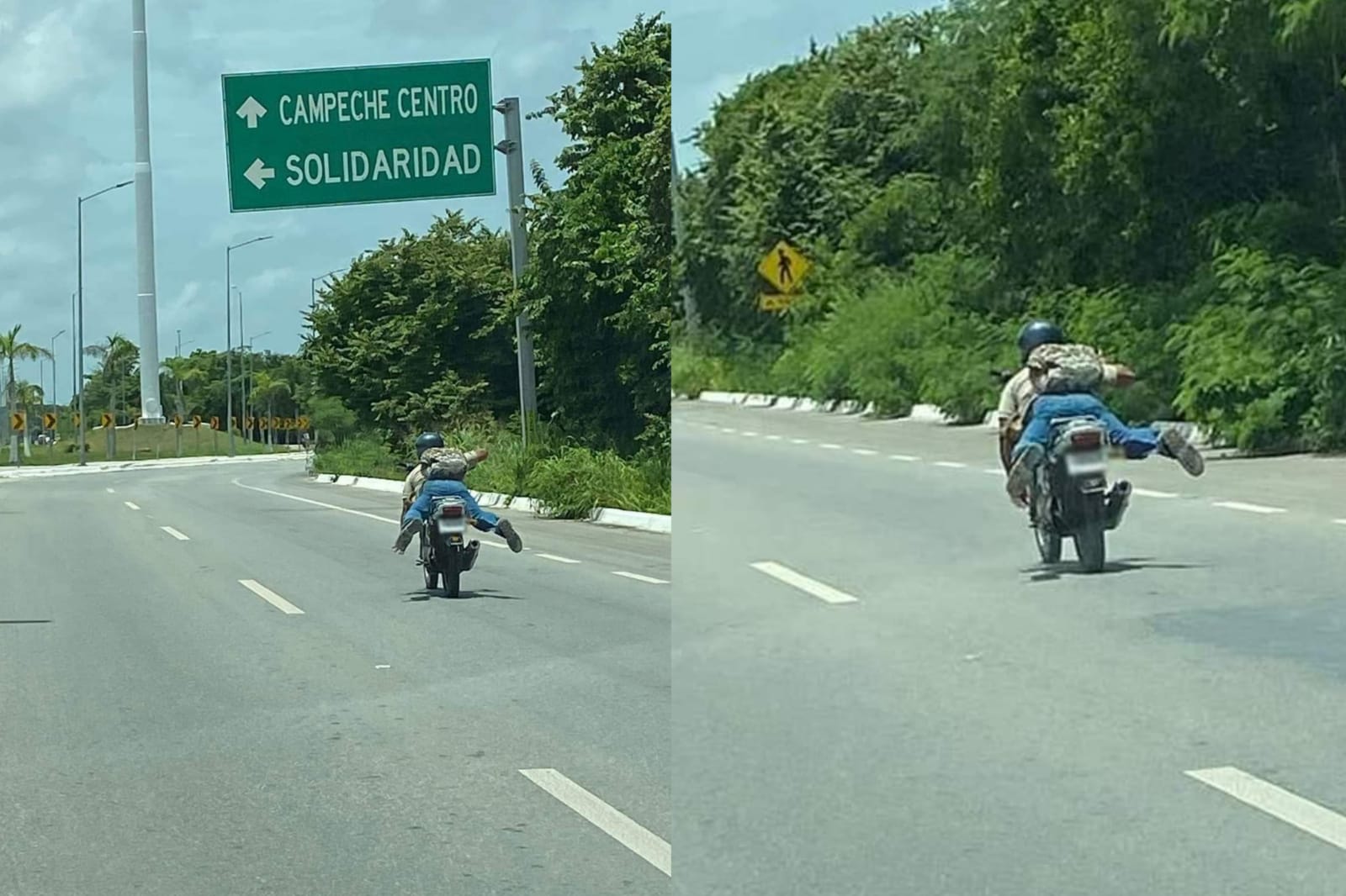 Por medio de las redes sociales viralizaron imágenes un sujeto que simula ir volando mientras conduce su motocicleta.