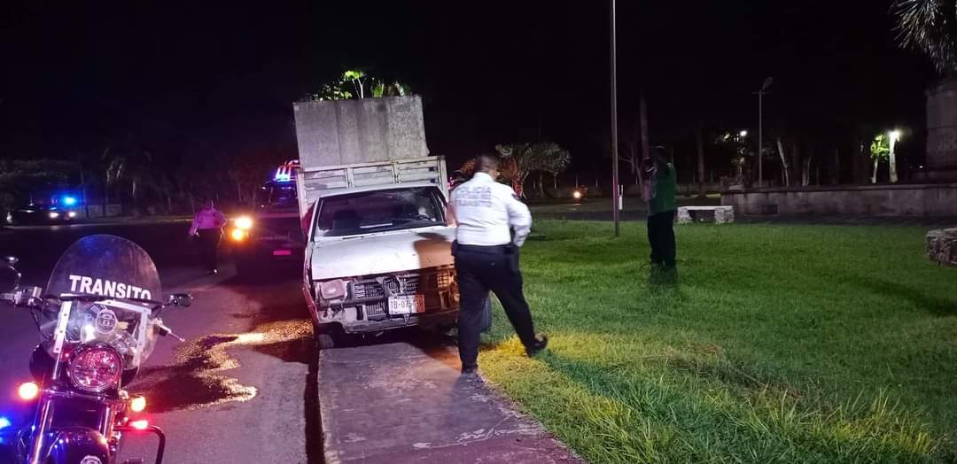 El conductor de la camioneta terminó arriba de la glorieta de la Fuente Maya, tras dar un volantazo para evitar un aparatoso choque.