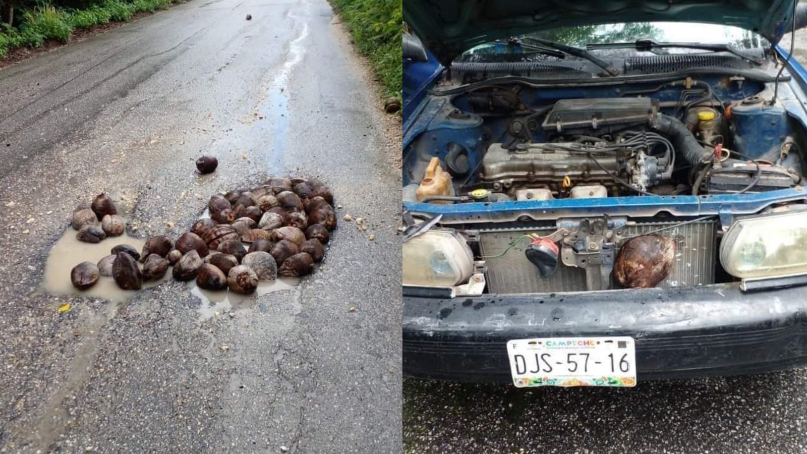 Los habitantes rellenaron los baches con cocos y varios carros ya han sufrido los estragos de la “nueva tecnología”. Campeche(Marcrix Noticias).- A los habitantes de Campeche les pareció buena idea…