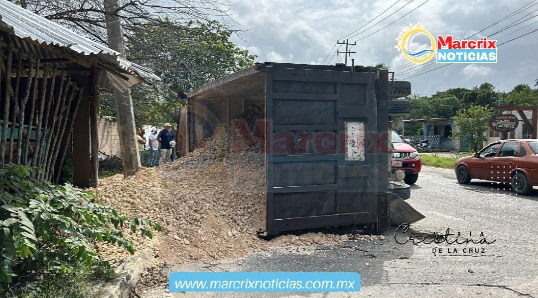 Camioneta que transportaba tomates vuelca al Sur de Quintana Roo
